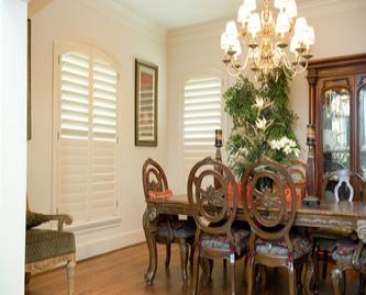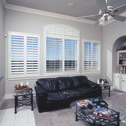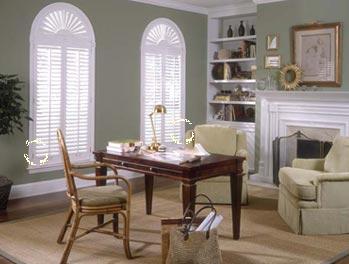 Plantation Shutter with Separate Fan Top over Arch, 2 1/2" Louvers with